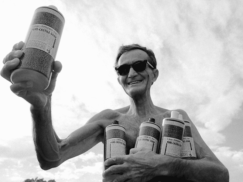 1980s – สบู่ของ Dr. Bronner’s เริ่มเข้าสู่ตลาดกระแสหลัก Ralph เข้ามาช่วยปรับปรุงเนื้อหาข้อความบนฉลาก ขณะที่ Jim คิดค้นผลิตภัณฑ์โฟมเข้มข้นที่ใช้ในการดับไฟป่าและอาคาร